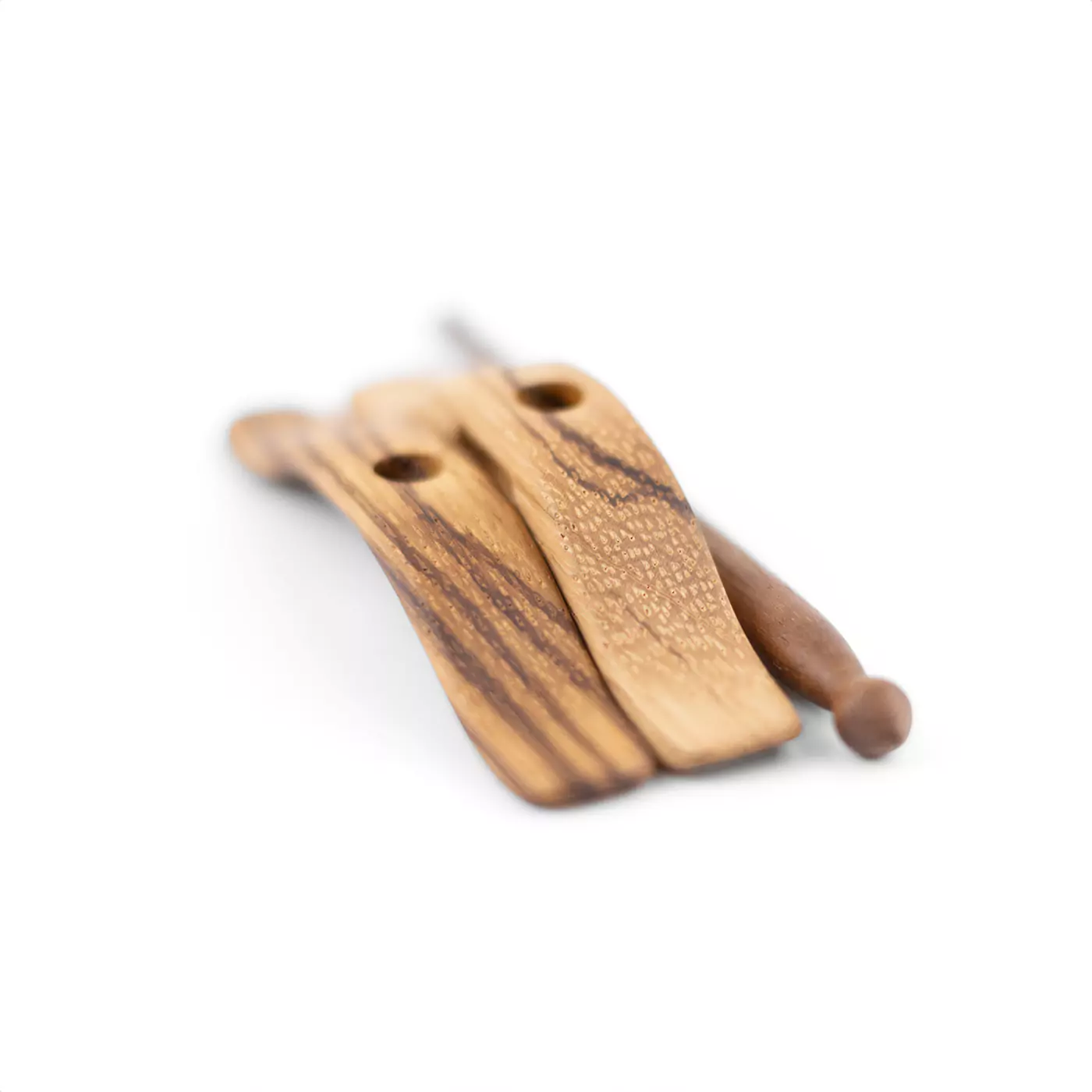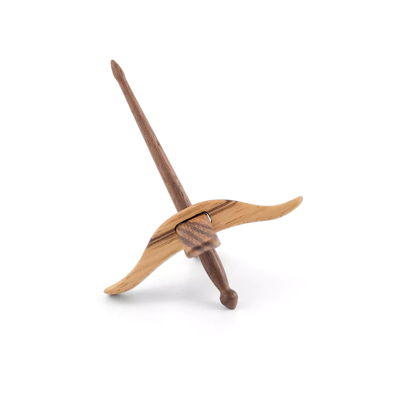 De stokjes van mijn spintollen hebben een verdikking bij de punt, zodat je je single gemakkelijk kunt bevestigen. Ze zijn gemaakt van walnoot of hickory. Hickory is een bijzonder sterke houtsoort, omdat het een hoge dichtheid en veerkracht heeft. Spintollen met hickory-stokjes kunnen daardoor goed tegen een stootje.