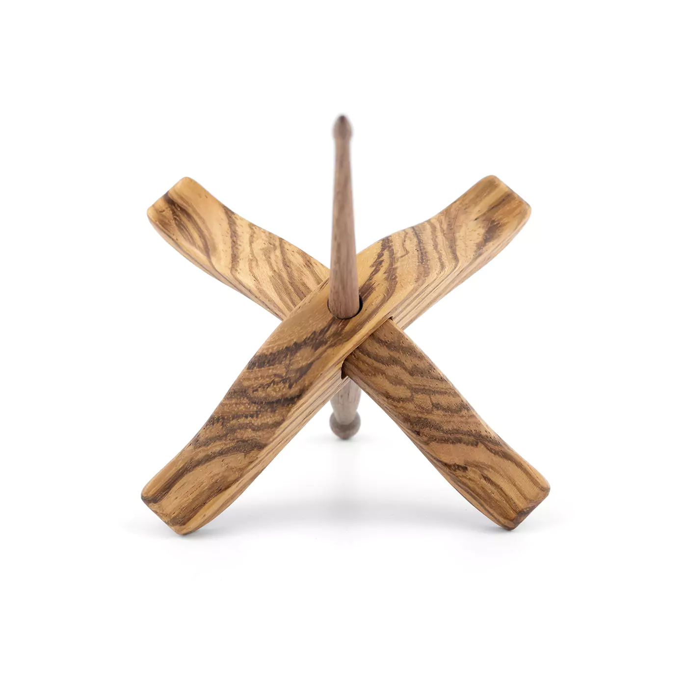 De stokjes van mijn spintollen hebben een verdikking bij de punt, zodat je je single gemakkelijk kunt bevestigen. Ze zijn gemaakt van walnoot of hickory. Hickory is een bijzonder sterke houtsoort, omdat het een hoge dichtheid en veerkracht heeft. Spintollen met hickory-stokjes kunnen daardoor goed tegen een stootje.