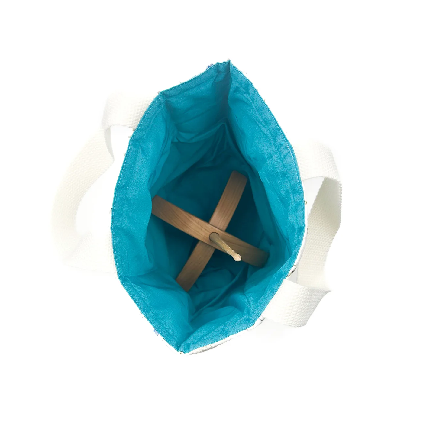 De spintolbag is gemaakt van hetzelfde unieke stofje als de Sockblockerbag, maar heeft een ander ontwerp. Hij is precies afgestemd op wat je als spinner nodig hebt. De tas is gevoerd en biedt genoeg ruimte voor je spintol én de vezels waar je mee bezig bent. Zo blijft alles bij elkaar, beschermd en klaar om verder te spinnen wanneer jij dat bent.
